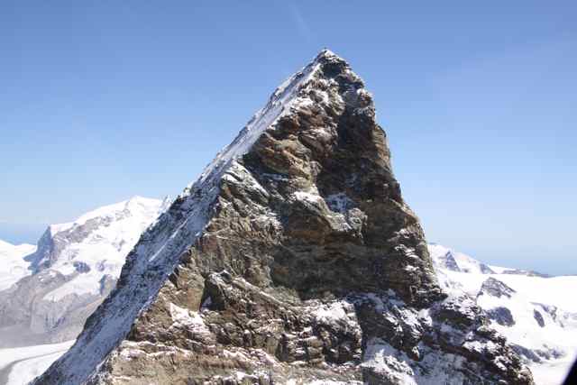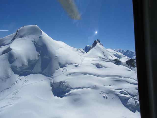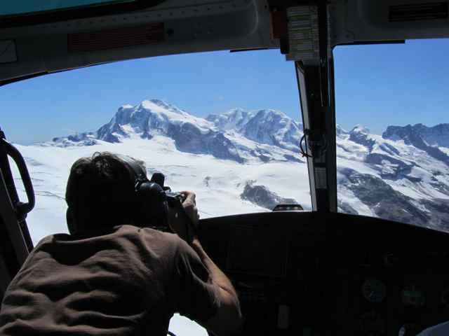 Von dort über Castor und Pollux vorbei am Liskamm zur Dufouspitze. Einen kleinen Abstecher in Richtung Rimpfischhorn und Allalinhorn und wieder zurück zum Landeplatz.